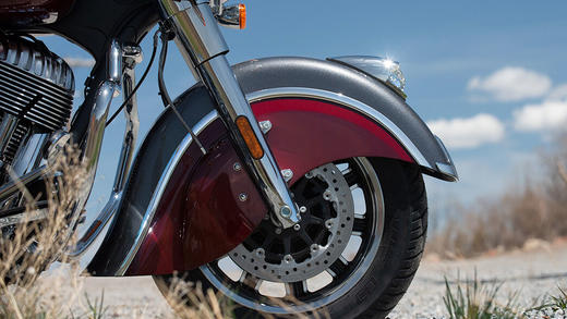 | Стандартна комплектація | Швидкознімне вітрове скло, шкіряні сидіння, жорсткі кофри з замком на дистанційному управлінні, передні дуги, контроль тиску в шинах, ABS, круїз контроль, запалювання без ключа, значок з написом Indian® на бензобаку |