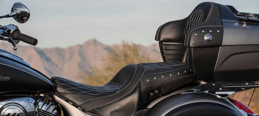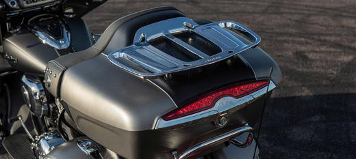 | Стандартна комплектація | 7" сенсорна панель Ride Command® з навігатором, що механічно регулюється вітрове скло, фари дальнього світла, передні дуги, сидіння з вінілу (з окремим управлінням підігріву для водія і пасажира), підігрів ручок керма, регульовані пасажирські платформи, обсяг для зберігання 137 л, контроль тиску в шинах, жорсткі кофри і багажник з замком на дистанційному управлінні, вибір режиму водіння, деактивація заднього циліндра, ABS, круїз контроль, запалювання без ключа, 200 Вт аудіо система з AM / FM, USB, Bluetooth, порт для смартфона |