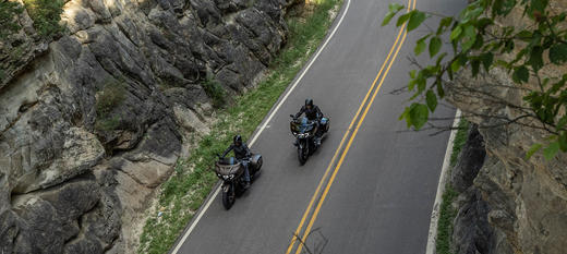 | Стандартна комплектація | Система Ride Command з навігатором і Apple CarPlay®, інтелектуальна технологія розрахунку кута крену Smart Lean Technology, вибір режиму водіння, жорсткі кофри, гальмівна система Brembo, 68+ літрів для зберігання, ABS, запалювання без ключа, фіксований обтічник, регульовані повітряні дефлектори в обтічнику , регульоване вітрове скло, 12В зарядний роз'єм |