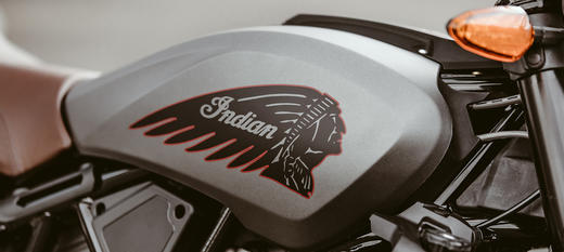 Indian - FTR 1200 Rally представлено в сірому кольорі Titanium Smoke, обладнаний декоративним вітровим щитком, на 2 дюйма вищим кермом і коричневим сидінням в стилі ралійних байків.