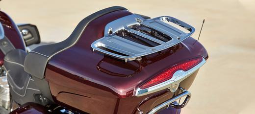 | Стандартна комплектація | 7 "сенсорна панель Ride Command® з навігатором і Apple CarPlay®, вітрове скло що механічно регулюється, фари дальнього світла, передні дуги, шкіряні сидіння (з окремим управлінням підігріву для водія і пасажира), підігрів ручок керма, регульовані пасажирські платформи, обсяг для зберігання 137 л, контроль тиску в шинах, жорсткі кофри і багажник з замком на дистанційному управлінні, вибір режиму водіння, деактивація заднього циліндра, ABS, круїз контроль, запалювання без ключа, 600 Вт аудіо система з AM / FM, USB, Bluetooth, порт для смартфона, підлокітники для пасажира, хромовані накладки на переднє і заднє крила, дзеркала pinnacle, широкі платформи, накладки на двигун в тон фарбування мотоцикла, 12В зарядний роз'єм |