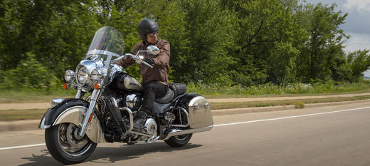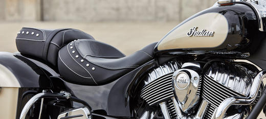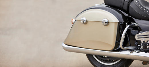 | Стандартна комплектація | Швидкознімне вітрове скло, сидіння з вінілу, жорсткі кофри з замком на дистанційному управлінні, передні дуги, контроль тиску в шинах, ABS, круїз контроль, запалювання без ключа, значок з написом Indian® на бензобаку |